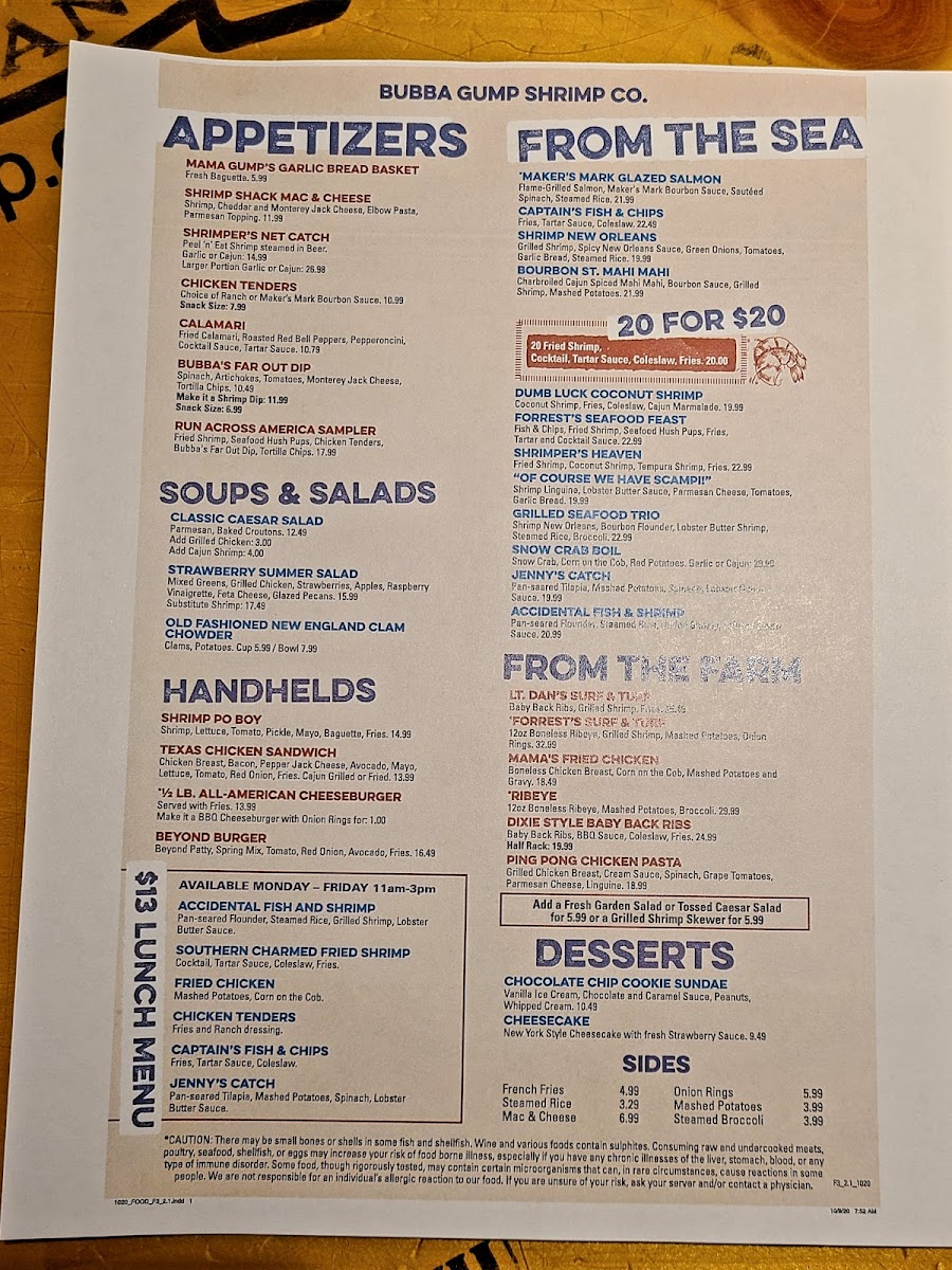 Every visit promises friendly and attentive service, as noted by Preston Weismann, who found the staff to be exceptionally welcoming. Come hungry and enjoy a memorable meal at Bubba Gump Shrimp Co.! Just remember to reserve your spot online for a smoother experience!